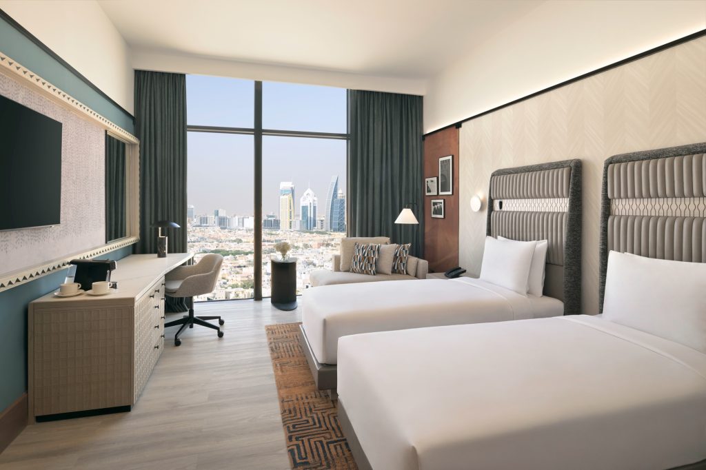 يضم الفندق 302 غرفة وجناحًا سكنيًا عصريًا، تشمل 192 غرفة ضيوف و110 أجنحة سكنية تتضمن مساحات للعمل والراحة والنوم، مع إضاءة ذكية، ومساحات عمل مريحة، وإطلالات بانورامية على المدينة. كما توفر الأجنحة السكنية تجربة إقامة أكثر مرونة، مع مطابخ مجهزة بالكامل، وغرف معيشة منفصلة، ومساحات عمل مخصصة، ما يجعلها مناسبة بشكل خاص للإقامات الطويلة وللضيوف الذين يزورون الرياض لأغراض طبية أو تجارية أو للانتقال.